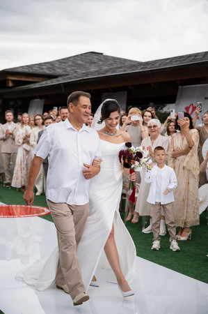 Яркая, запоминающаяся свадьба в азиатском стиле. Все было продумано вплоть до музыки; даже я после свадьбы попросил у ребят треклист с их регистрации. Праздник проходил в фуршетном формате, и, конечно же, под конец появилась катана.